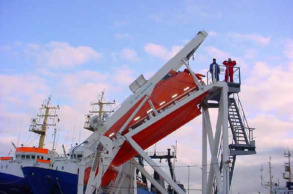 platforms and modern cargo ships. The idea is that the complete crew enters the boat, shuts the door and abandons the ship. |