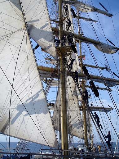 a fullrigged ship of 109 m LOA. She carries 2770 m² sail area and