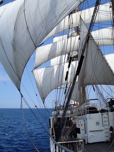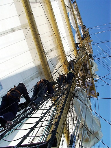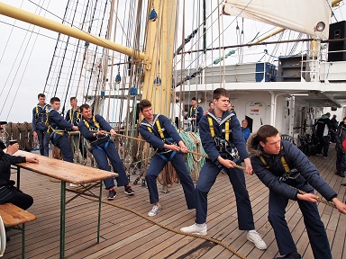 speed record is 19.5 knots. Additional to the cadets she takes on board