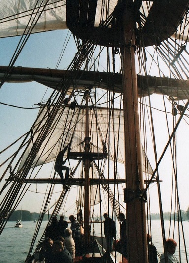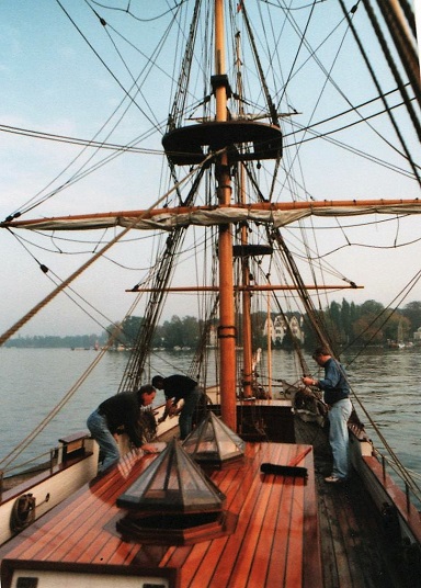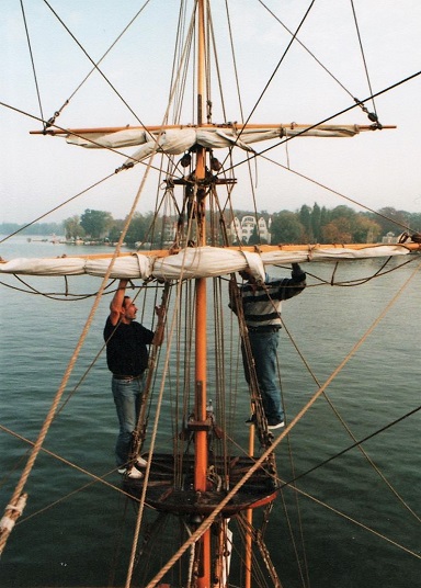 Was mich verwunderte war, dass ein so kleines Schiff genausoviel, ja vielleicht sogar mehr Mühe macht wie ein großes und alle Manöver genausolange oder gar länger dauern. Es sind halt ebensoviele Taue zu holen und zu fieren wie auf einem großen Vollschiff.