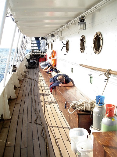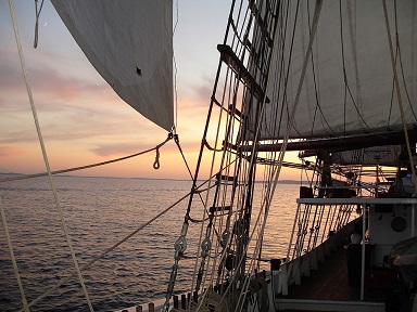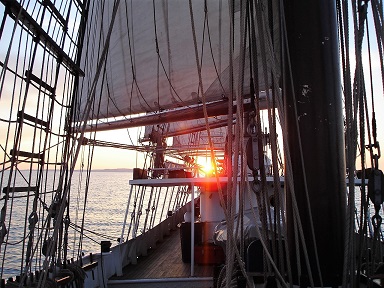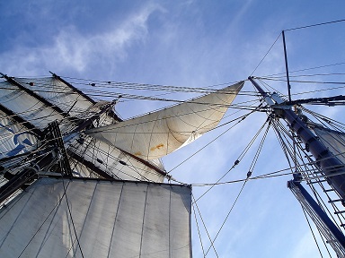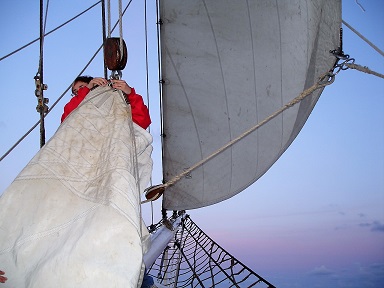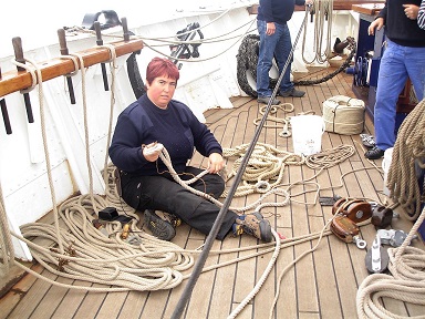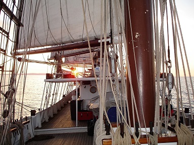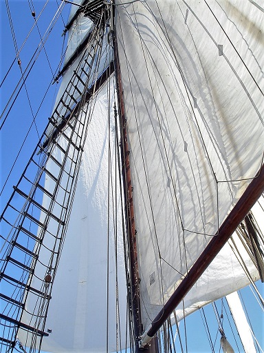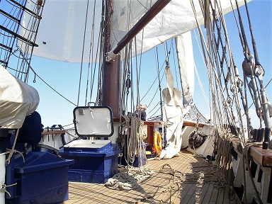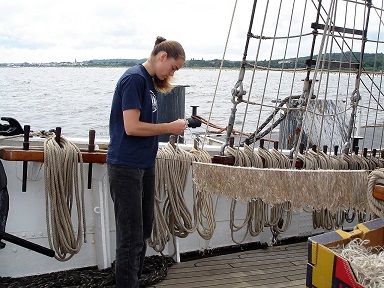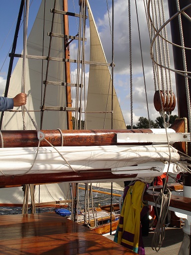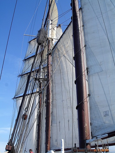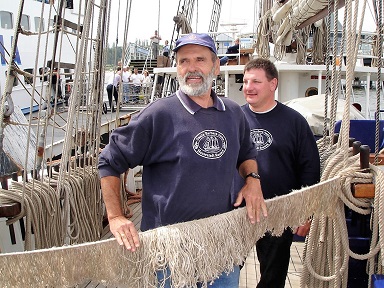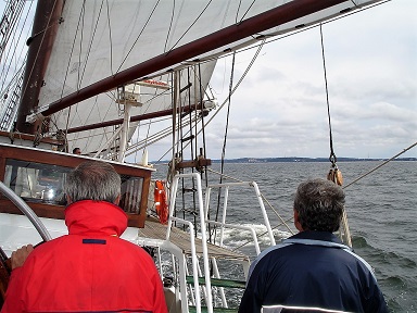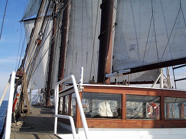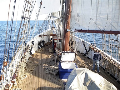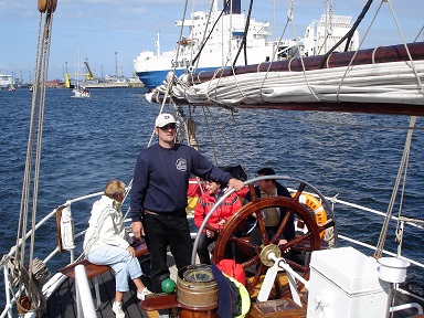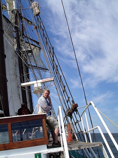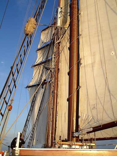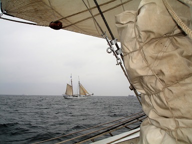 The "SANTA BARBARA ANNA" is a topsail schooner with an additional fore course. Her home port is Rostock/Germany. She is operated by a completely voluntary crew and takes passengers for day sailings in the sea area off Warnemuende. Occasionally she does longer trips to train her crew and appears at sailing festivals in near-by ports. The photos origin from 2006-2008 when I was member of her permanent voluntary crew.