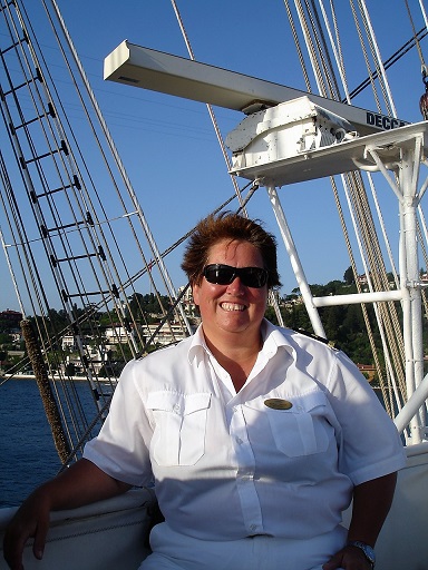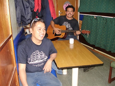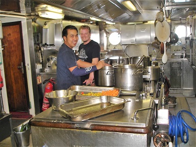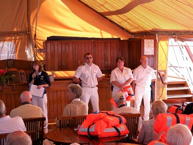 her decks and in her passenger areas. The crew is a happy lot coming