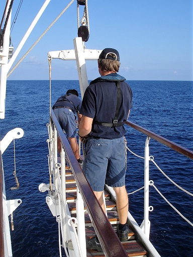 on some training ships. "SEA CLOUD" is sailed by a professional crew