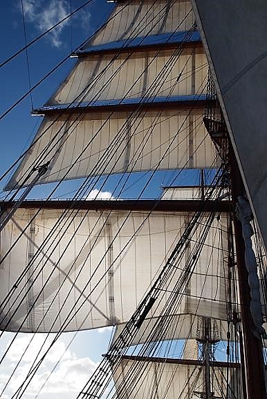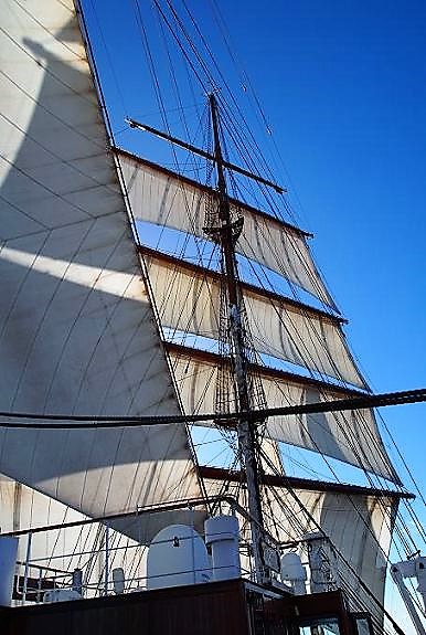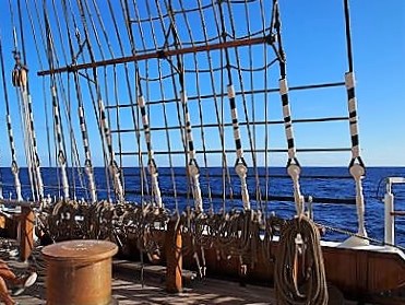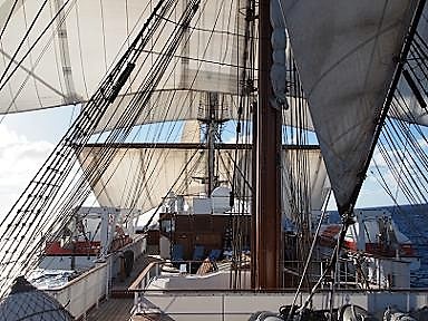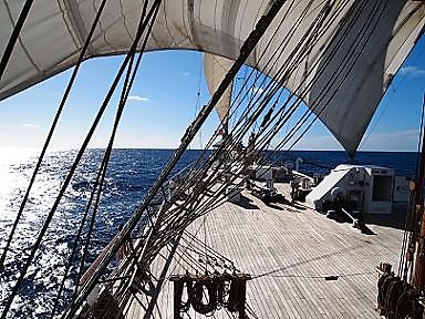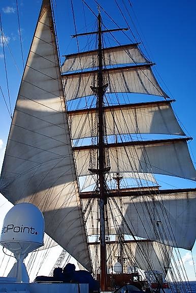In 2011 I worked on SEA CLOUD II. The barque is the younger sister of the SEA CLOUD. She is bigger and her atmosphere is more cruise ship like. Her bridge is full of modern technical equipment. She is sailing well and does quite good speed on a broad and beam reach.